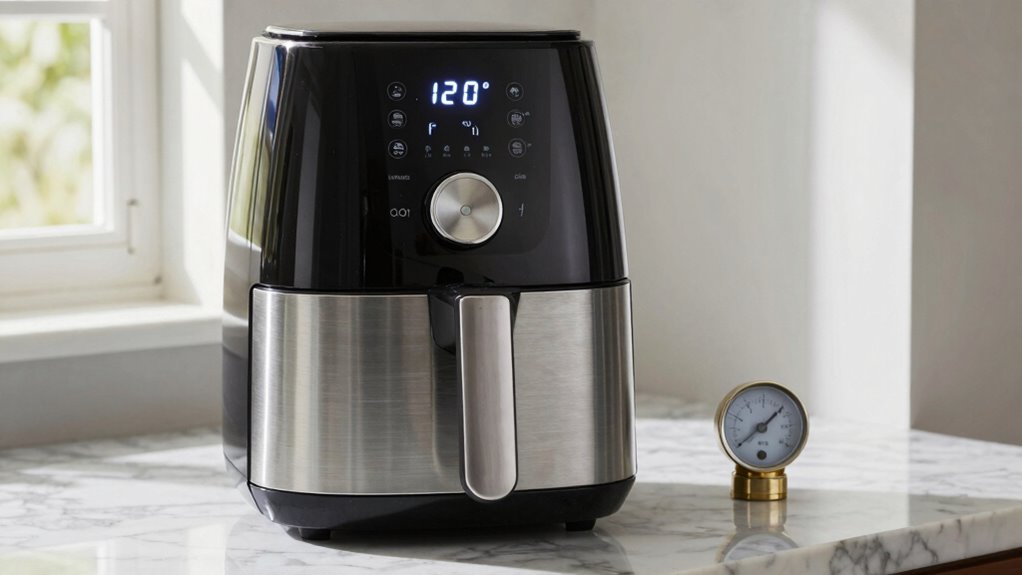 While higher wattage might seem like it should make an air fryer automatically faster, that’s not always the case. Several factors influence cooking speed beyond wattage, such as the design of the heating element and the air circulation system. Additionally, the size and shape of your air fryer can affect how evenly and quickly it cooks. Using quality air fryer accessories can improve airflow and heat distribution, helping you achieve better results regardless of wattage. Proper maintenance tips, like cleaning vents and heating elements regularly, also guarantee your appliance runs efficiently. Remember, a higher wattage doesn’t guarantee faster cooking if other components aren’t optimized. Focus on overall design and upkeep to get the best performance from your air fryer.