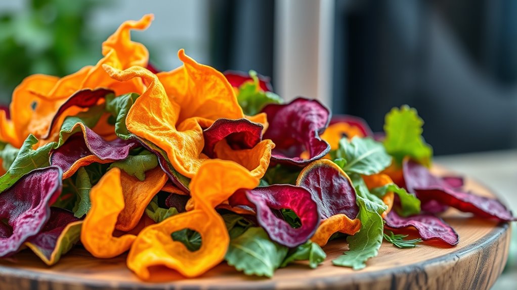 Air-fried veggie chips suit all dietary needs because you can customize them to match gluten-free options and vegan-friendly recipes. You easily adapt ingredients to fit your dietary demands, making them a versatile, vibrant snack. You can enjoy these crispy creations confidently, knowing they align with your health goals and dietary restrictions. So, whether you’re gluten-free or vegan, these veggie chips are a splendid, satisfying solution!