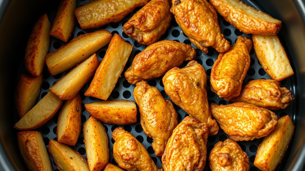 Remember, overcrowding your air fryer basket is like trying to fit an entire forest into a tiny jar — it just doesn’t work. When you give your food room to breathe, it crisps evenly and cooks perfectly, turning each piece into a golden masterpiece. So, resist the urge to pack it in tight. Instead, see your basket as a stage for each ingredient to shine, creating a symphony of flavor with every turn.