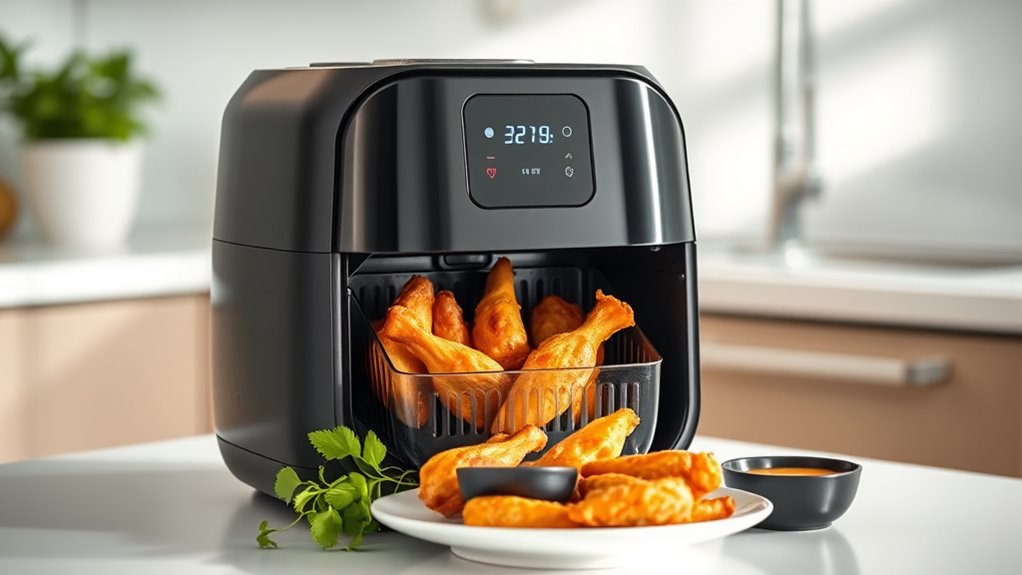 You’ll find that air fryers are generally more energy-efficient than traditional ovens. Their smaller size means lower energy consumption, and they heat up quickly, reducing cooking time. This makes them a more efficient appliance for everyday use. While ovens may handle larger quantities, air fryers save energy by cooking faster and using less power, making them a smart choice if you’re looking to cut down on energy costs and improve overall appliance efficiency.