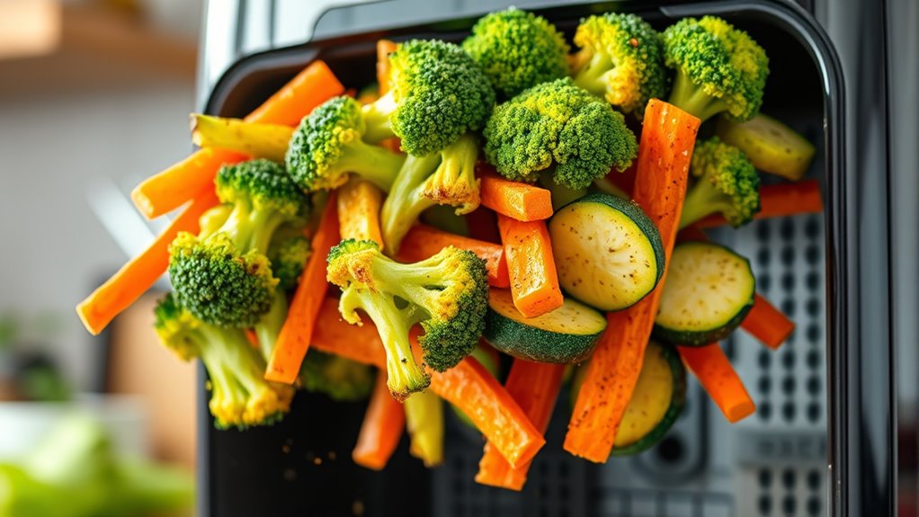 In the end, mastering seasoning variations and cooking times turns simple vegetables into a versatile and tasty side dish that everyone will enjoy. The air fryer simplifies the process, giving you control over texture and flavor in just minutes. So, get creative, keep an eye on those times, and enjoy your delicious, healthy vegetable sides in no time.