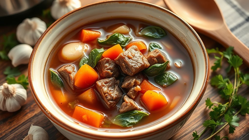 With your multicooker, whipping up quick, flavorful soups and stews is simple and convenient. You can toss in your favorite ingredients like vegetables, meats, or legumes, set the timer, and let it work while you relax. Its even heat distribution guarantees consistent results, and you can easily customize flavors or substitute ingredients. Plus, you can prepare large batches for meal prep. Keep exploring to discover even more tips and tricks for perfecting your favorite comfort foods.