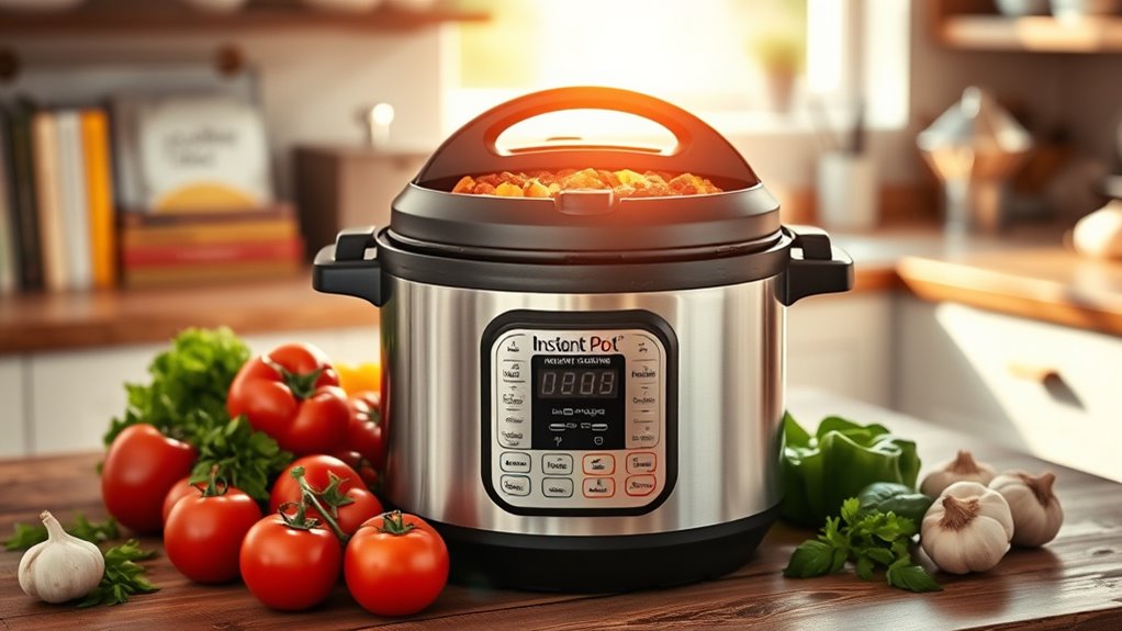 Adapting recipes for the Instant Pot also means understanding how the appliance impacts textures and flavors. For example, grains like rice or lentils cook much faster under pressure, so you’ll need to adjust cooking times accordingly. You might find that certain recipes benefit from pre- or post-cooking modifications, like sautéing aromatics before pressure cooking or finishing a dish with fresh herbs afterward. Experimenting with small batches can help you perfect these flavor adjustments and substitutions without risking larger quantities. Over time, you’ll develop a sense of how your Instant Pot handles different cuisines, allowing you to maintain authenticity while enjoying the convenience of modern pressure cooking. Ultimately, with thoughtful substitutions and flavor tweaks, you can successfully transform traditional recipes into delicious, Instant Pot-friendly meals that honor their origins. Additionally, understanding cultural ingredients can help you better adapt dishes to your available pantry staples while preserving their authentic flair.