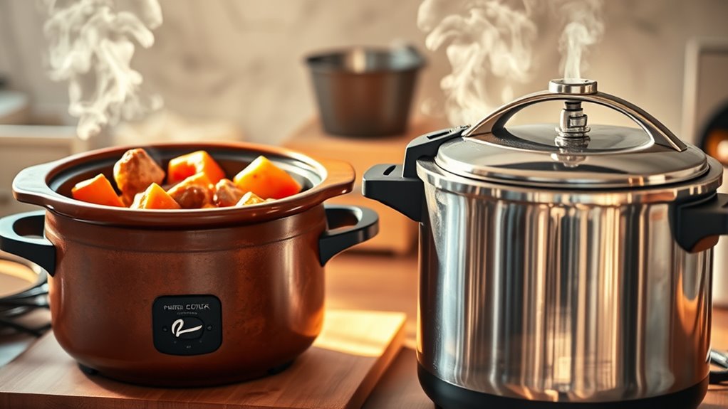 When it comes to preparing meals efficiently, choosing between slow cooking and pressure cooking can considerably impact your results. Each method has its strengths, especially when it comes to flavor preservation and nutrient retention, which are key to creating delicious, healthy dishes. Understanding when to use each technique helps you maximize their benefits and tailor your cooking to your needs.