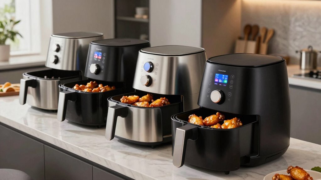 - Choose air fryers with versatile presets like wings, roast, bake, and dehydrate for customized wing perfection.