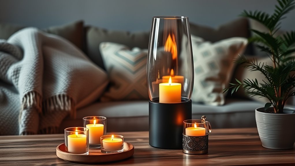 Choosing a candle warmer lamp with reliable safety features is vital to guarantee peace of mind and prevent accidents. Automatic shut-off timers are essential because they prevent overheating, reducing the risk of fire if you forget to turn it off. Flame-free designs eliminate hazards linked to open flames, making them safer around children and pets. Stable bases and non-slip pads ensure the lamp stays securely in place, preventing spills or tipping. Overheat protection mechanisms maintain ideal temperature levels, protecting your wax and preventing safety hazards. Additionally, features like cool-touch surfaces and insulated components enhance user safety during operation. Prioritizing these safety features helps me enjoy a cozy, fragrant home without worry, making my candle warmer experience both safe and enjoyable.