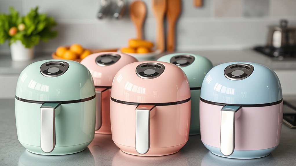When evaluating ceramic basket air fryers, ease of cleaning is a key factor that can save time and effort in the kitchen. Ceramic baskets are usually dishwasher safe, making cleanup quick and hassle-free without scrubbing. Their nonstick ceramic coatings prevent food from sticking, which means less residue and easier hand cleaning. The smooth, toxin-free surface resists stains and odors, helping maintain cleanliness over time. Removable and lightweight, ceramic baskets are simple to rinse and handle, reducing mess during cleanup. Plus, durable ceramic coatings withstand frequent use without peeling or flaking, ensuring consistent ease of cleaning throughout the product’s lifespan. Overall, ceramic baskets make keeping your air fryer spotless straightforward, allowing you to enjoy healthy meals without the extra cleaning stress.