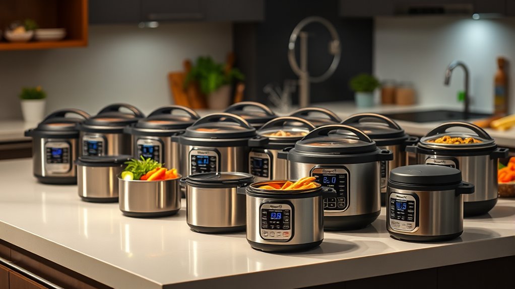 You’re wondering about the energy efficiency of small Instant Pots. I find they’re quite economical because they heat up quickly and use less energy than traditional stovetop or oven cooking. Since they’re designed for small meals, they don’t waste power reheating large spaces. Overall, I think they’re a smart choice if you want to save energy while enjoying fast, convenient cooking.