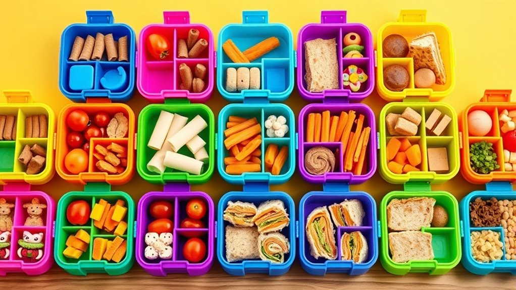You’re wondering if these lunchboxes are leak-proof, right? I’ve found that many of the top options have built-in seals and secure clasps that prevent spills, even if your kid’s lunch shifts around. I always look for ones with airtight lids and leak-proof compartments to keep everything contained. It’s so reassuring knowing that drinks and sauces won’t leak, making mealtime less stressful and mess-free for everyone.