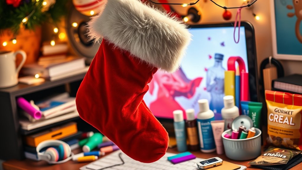 Think of stocking stuffers as tiny stars lighting up a college student’s holiday night. Each thoughtful gift is like a spark, guiding them through busy days and stressful nights. When you choose wisely, these small treasures become constellations of comfort, support, and joy. So, pick with care, and watch your gesture sparkle like a guiding star—brightening their season and reminding them they’re never truly alone in their journey.